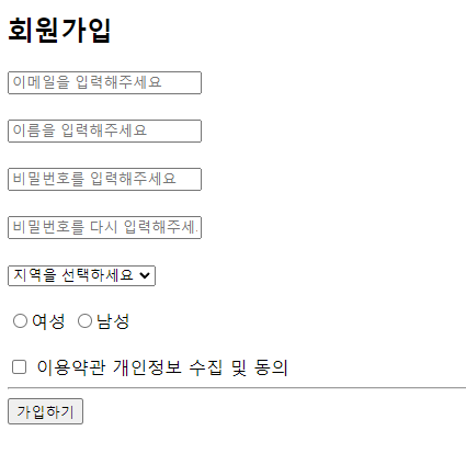 <input type="text" placeholder="이메일을 입력해주세요"><br><br>
